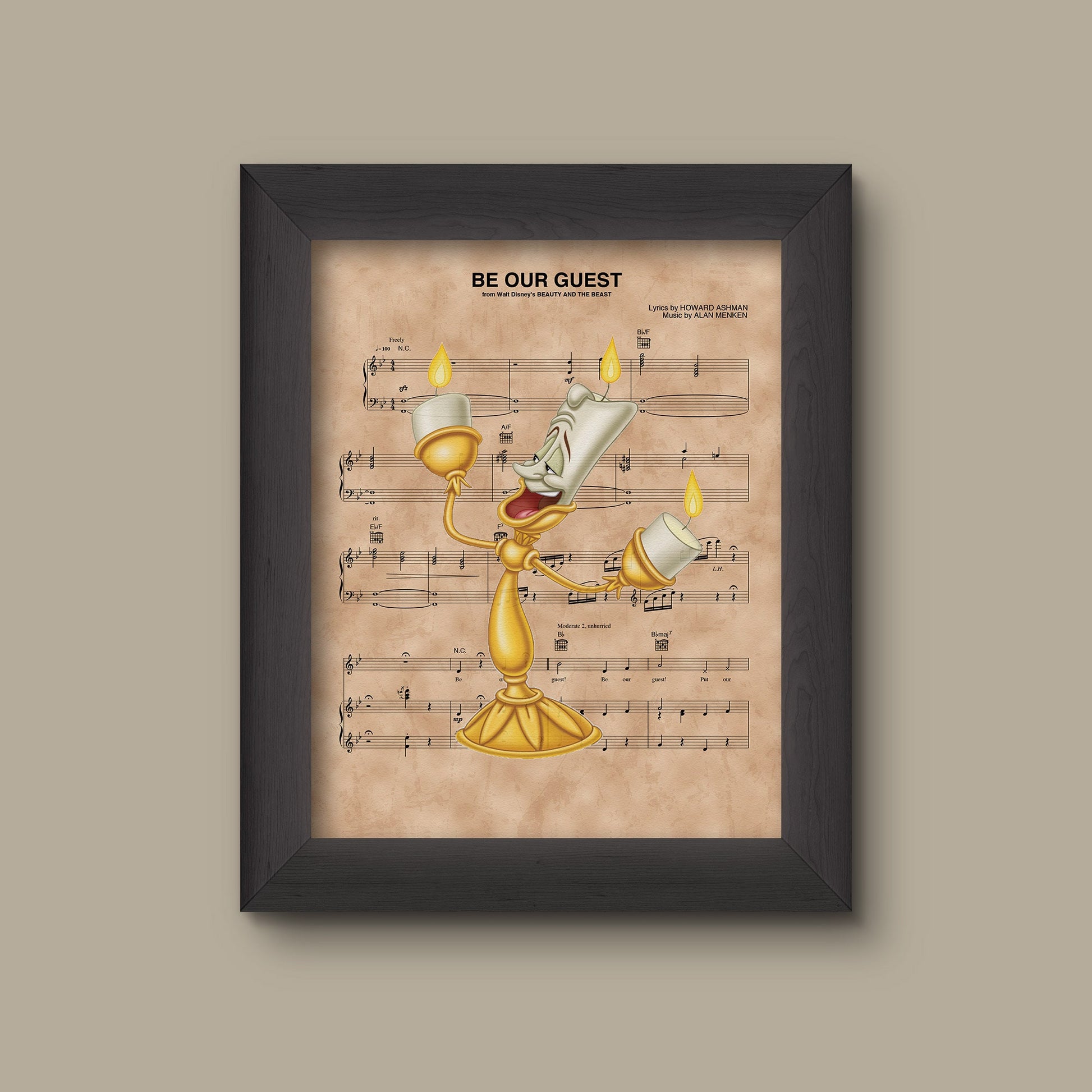 Add a refined touch to your space with this museum-quality art print inspired by Beauty and the Beast, Lumiere Be Our Guest Sheet Music Art Print, Disney Nursery Gift, Disney Wall Decor.