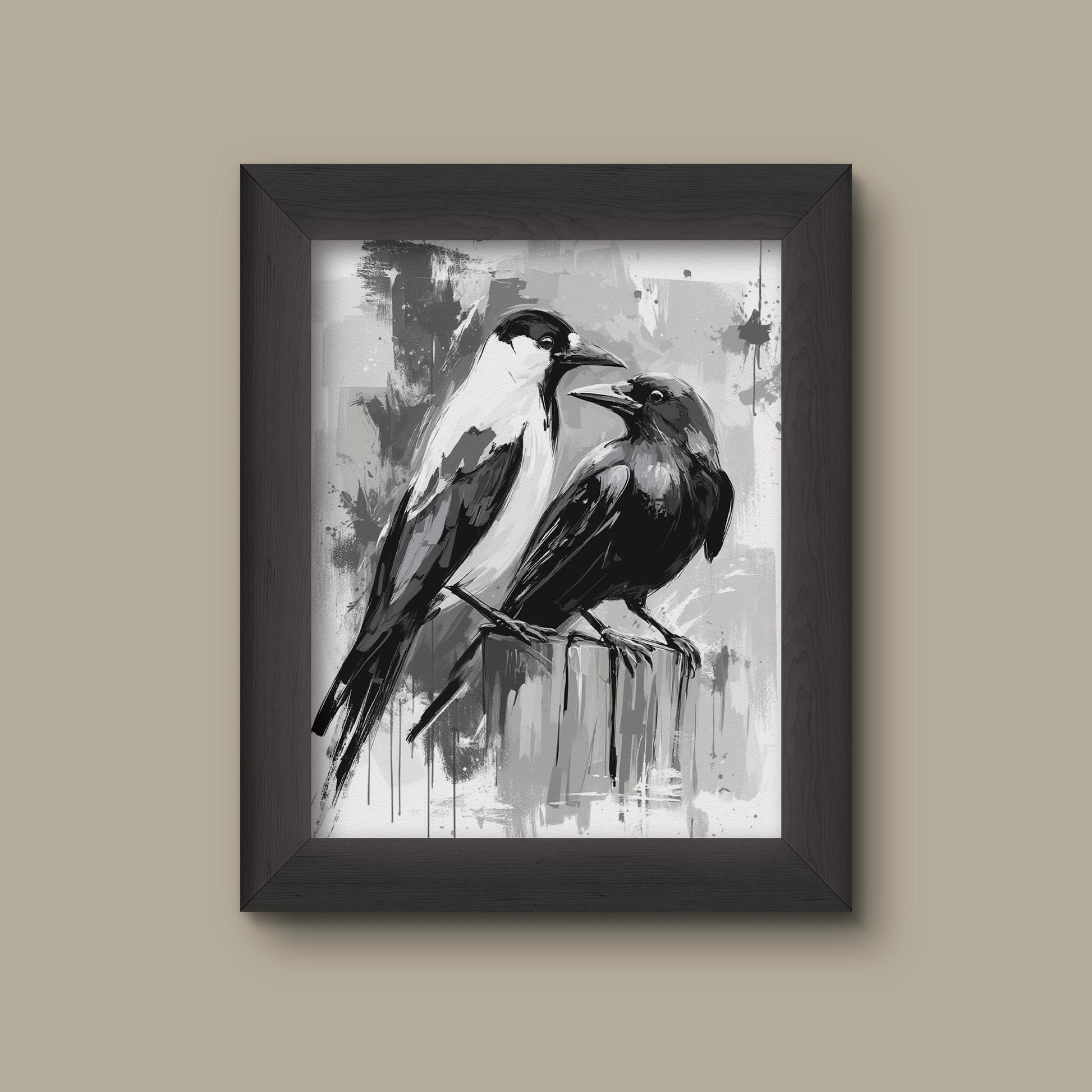 Add a refined touch to your space with this museum-quality art print inspired by Black and White Crows Art Print.