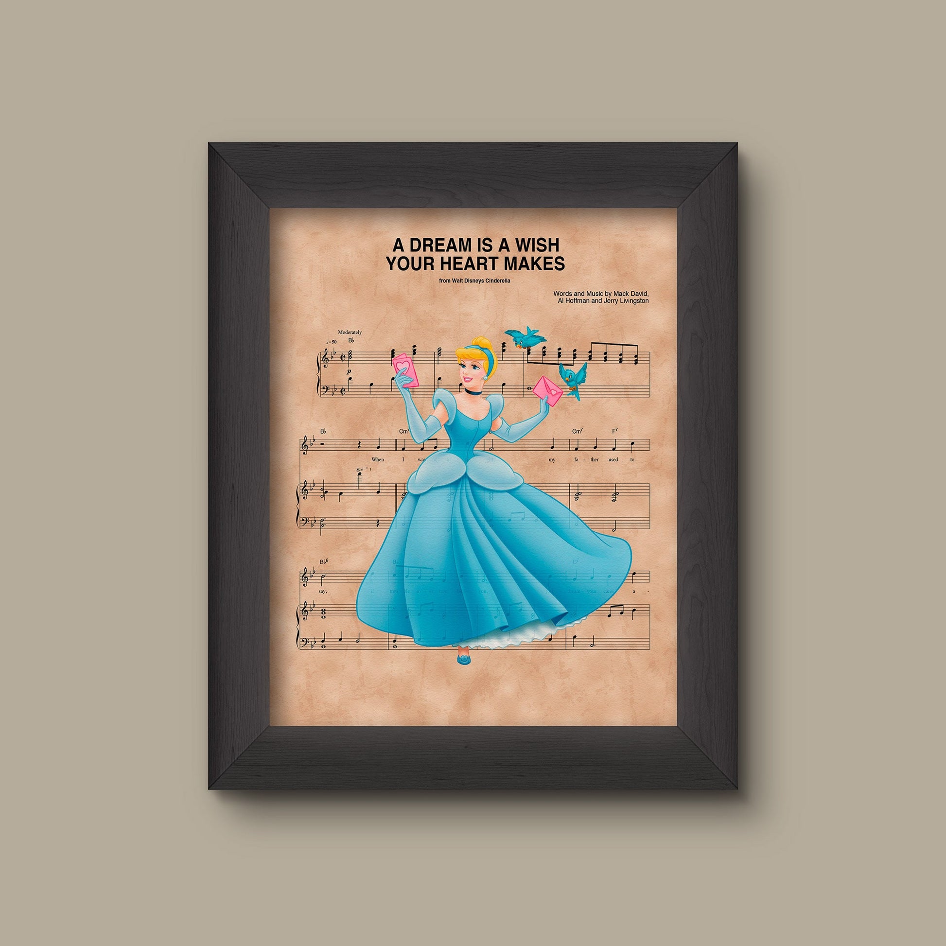 Add a refined touch to your space with this museum-quality art print inspired by Cinderella, A Dream Is A Wish Your Heart Makes Sheet Music Art Print.