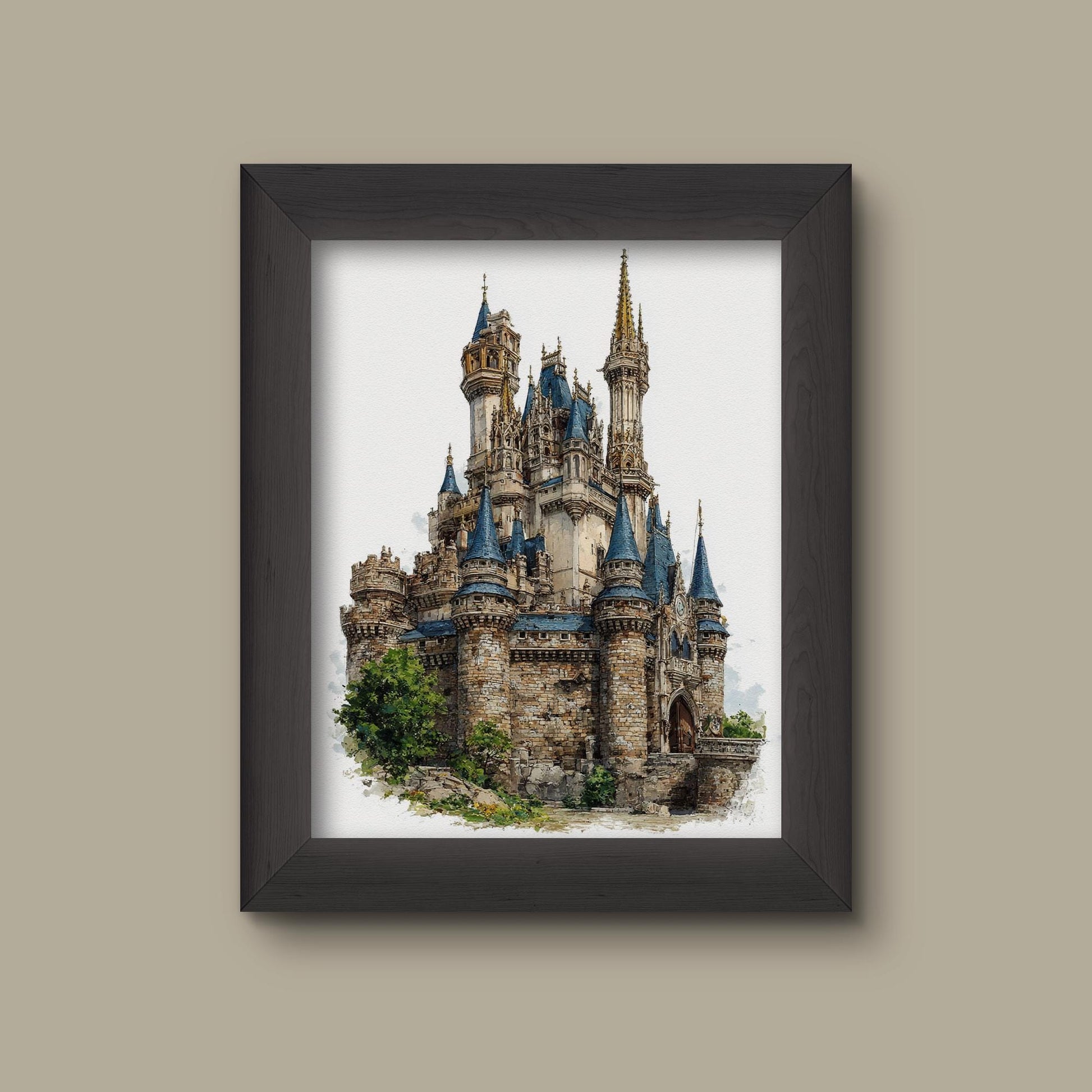Add a refined touch to your space with this museum-quality art print inspired by Disney Poster Watercolor Castle Print – Fairytale Fantasy Wall Art, Magic Kingdom Inspired Castle.