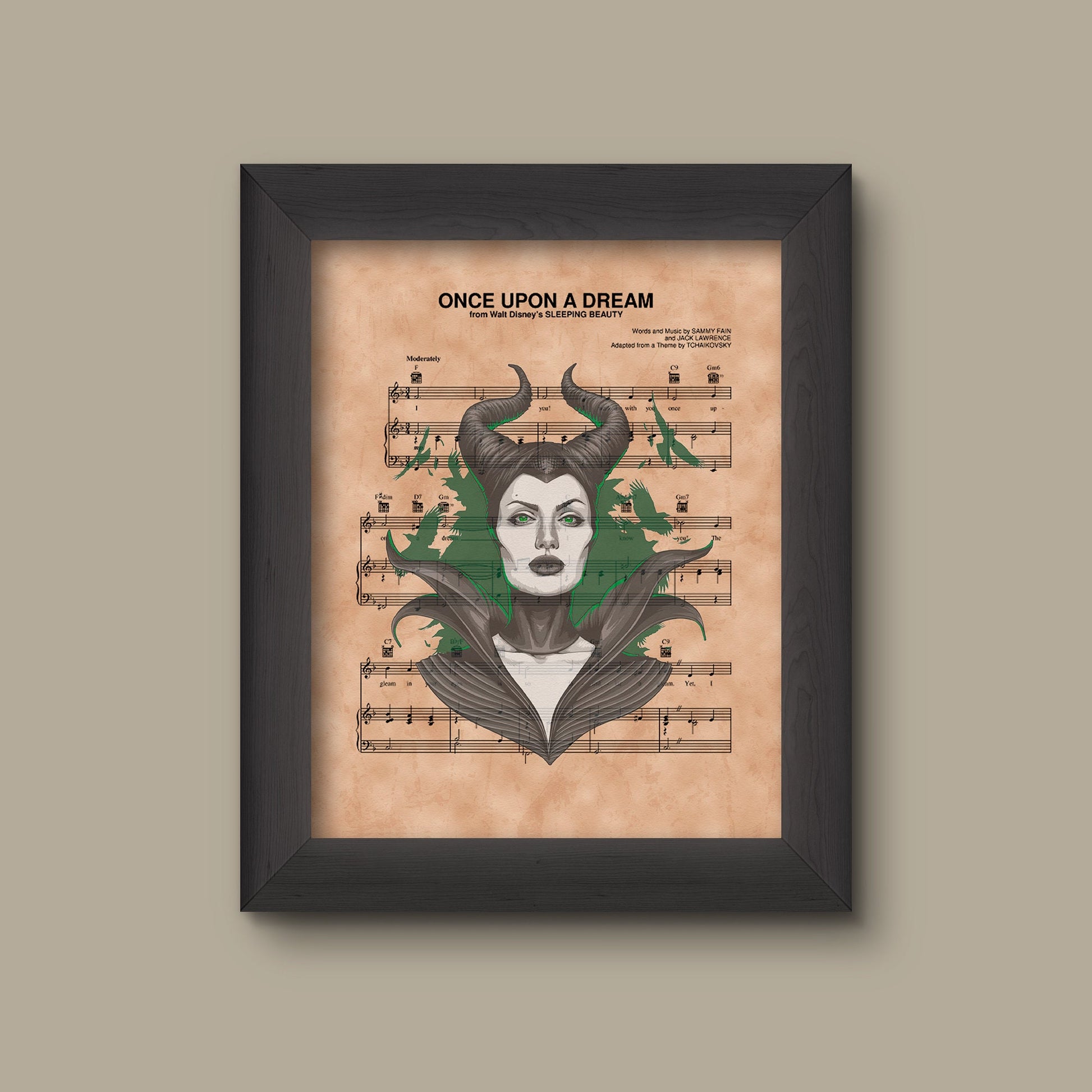 Add a refined touch to your space with this museum-quality art print inspired by Disney Sleeping Beauty Maleficent Sheet Music Art, Sleeping Beauty Gift, Maleficent Art,Once Upon A Dream Sheet Music Print, Angelina Jolie.