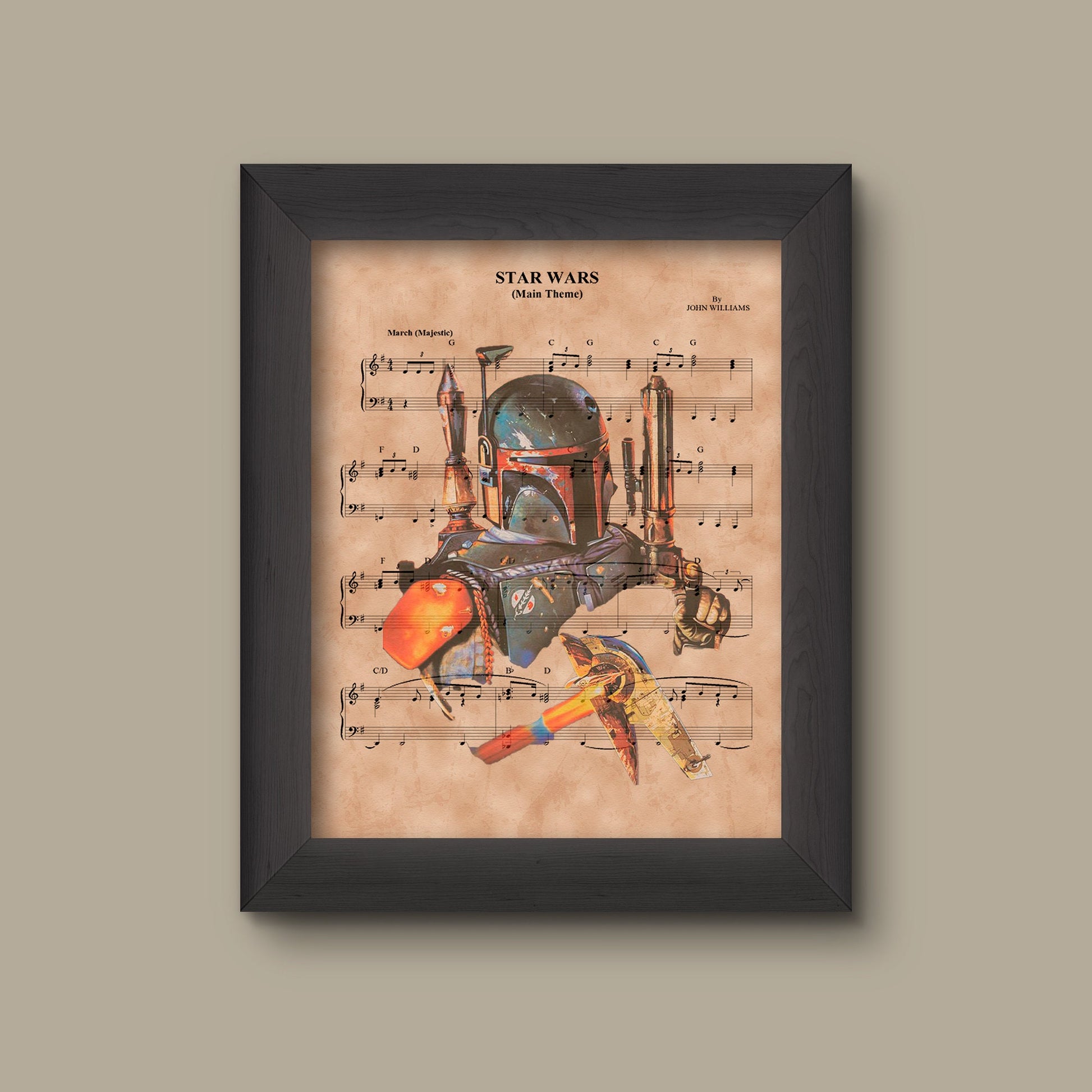 Add a refined touch to your space with this museum-quality art print inspired by Disney Star Wars Theme Sheet Music Art Print, Boba Fett, Star Wars Trilogy Art print, Slave I Ship,.