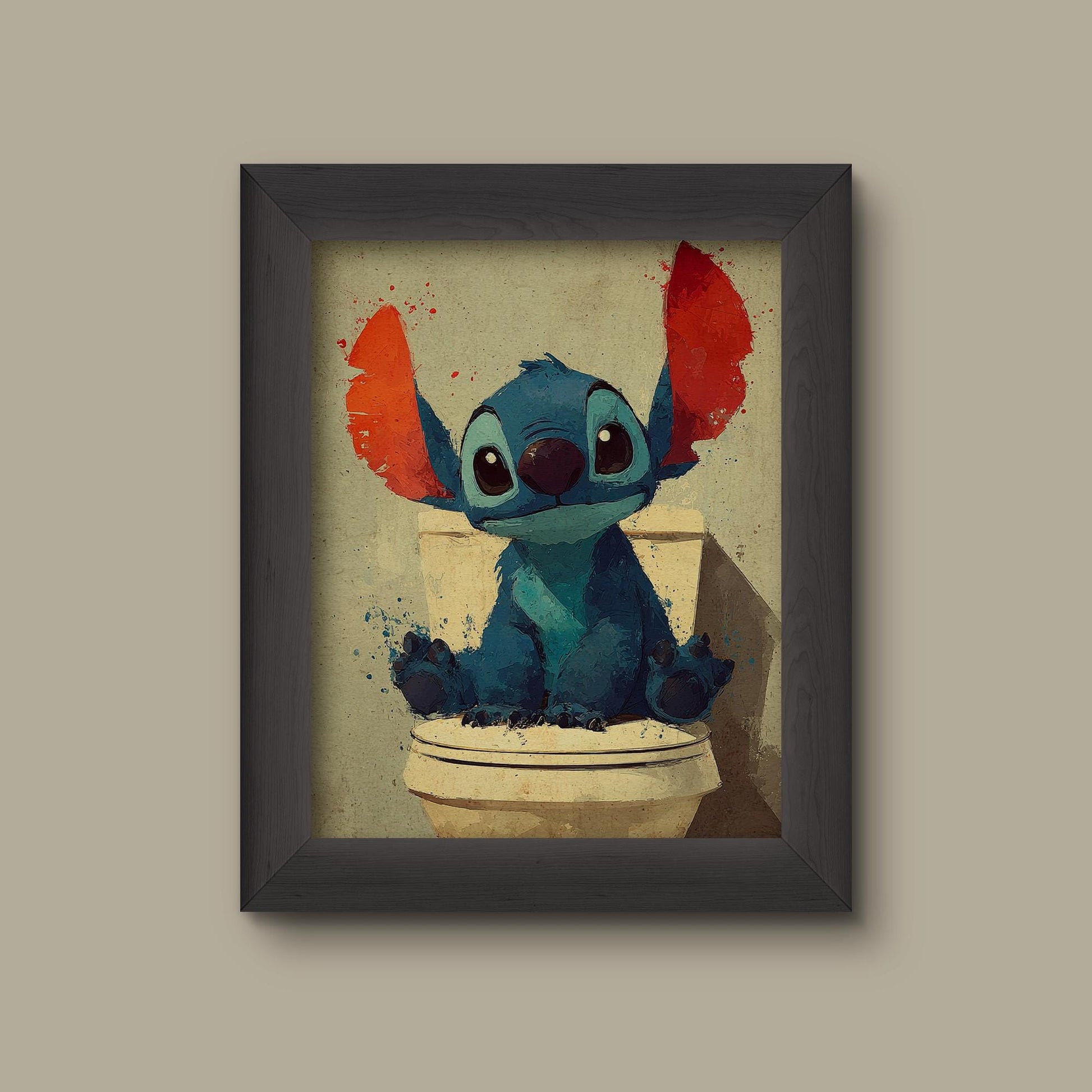 Add a refined touch to your space with this museum-quality art print inspired by Disney Stitch Bathroom Wall Art – Funny Watercolor Inspired Print - Bathroom Decor Poster.