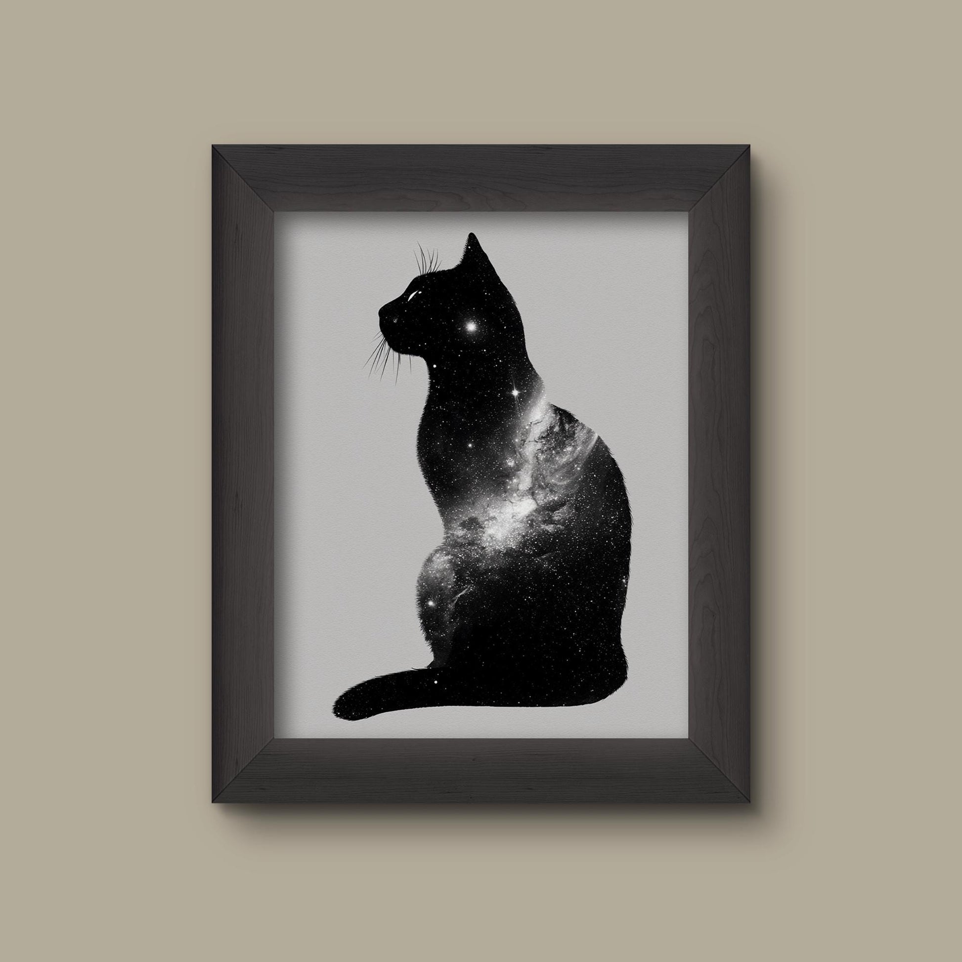 Add a refined touch to your space with this museum-quality art print inspired by Galaxy Cat Silhouette – Cosmic Animal Art Print.