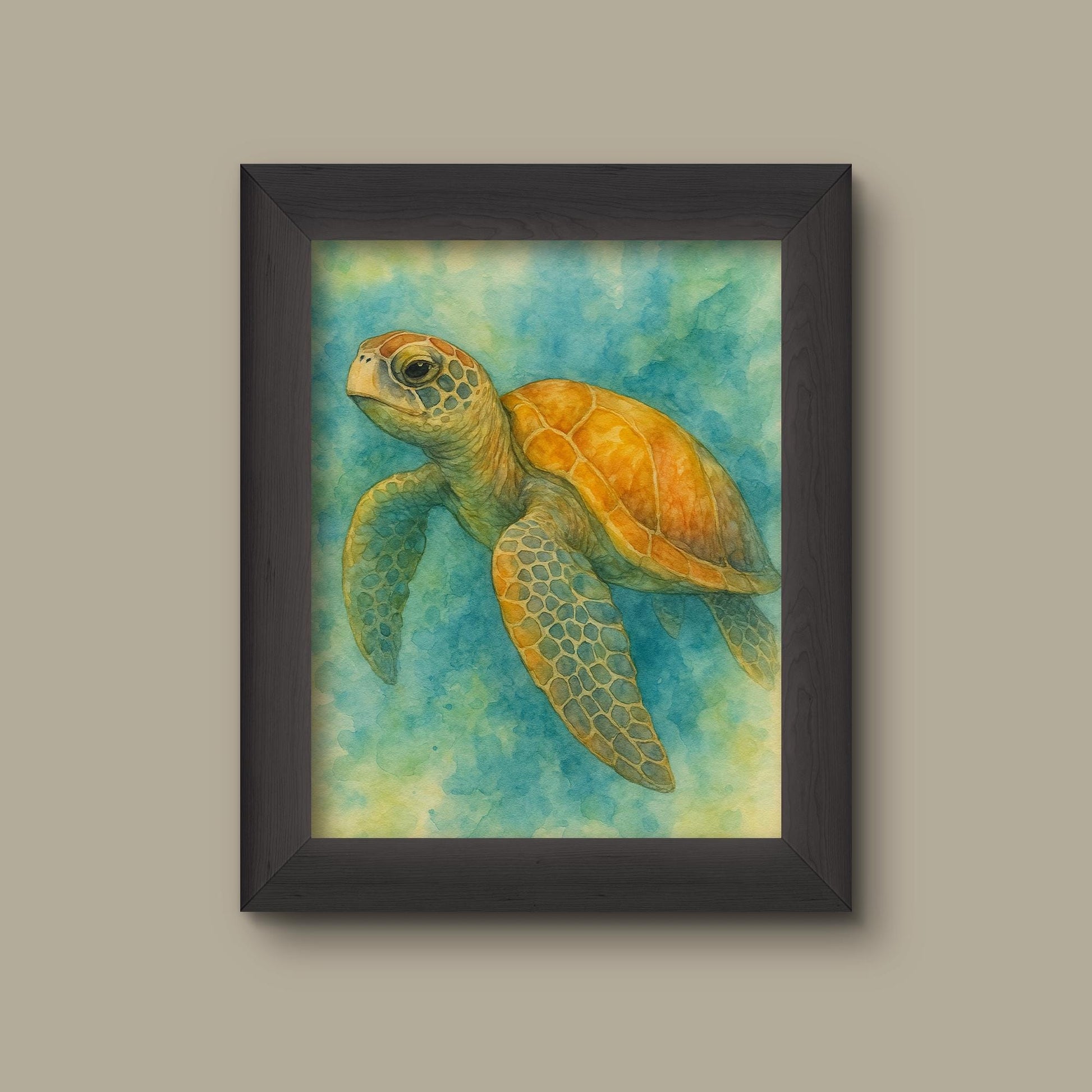 Add a refined touch to your space with this museum-quality art print inspired by Green and Yellow Watercolor Sea Turtle Print.