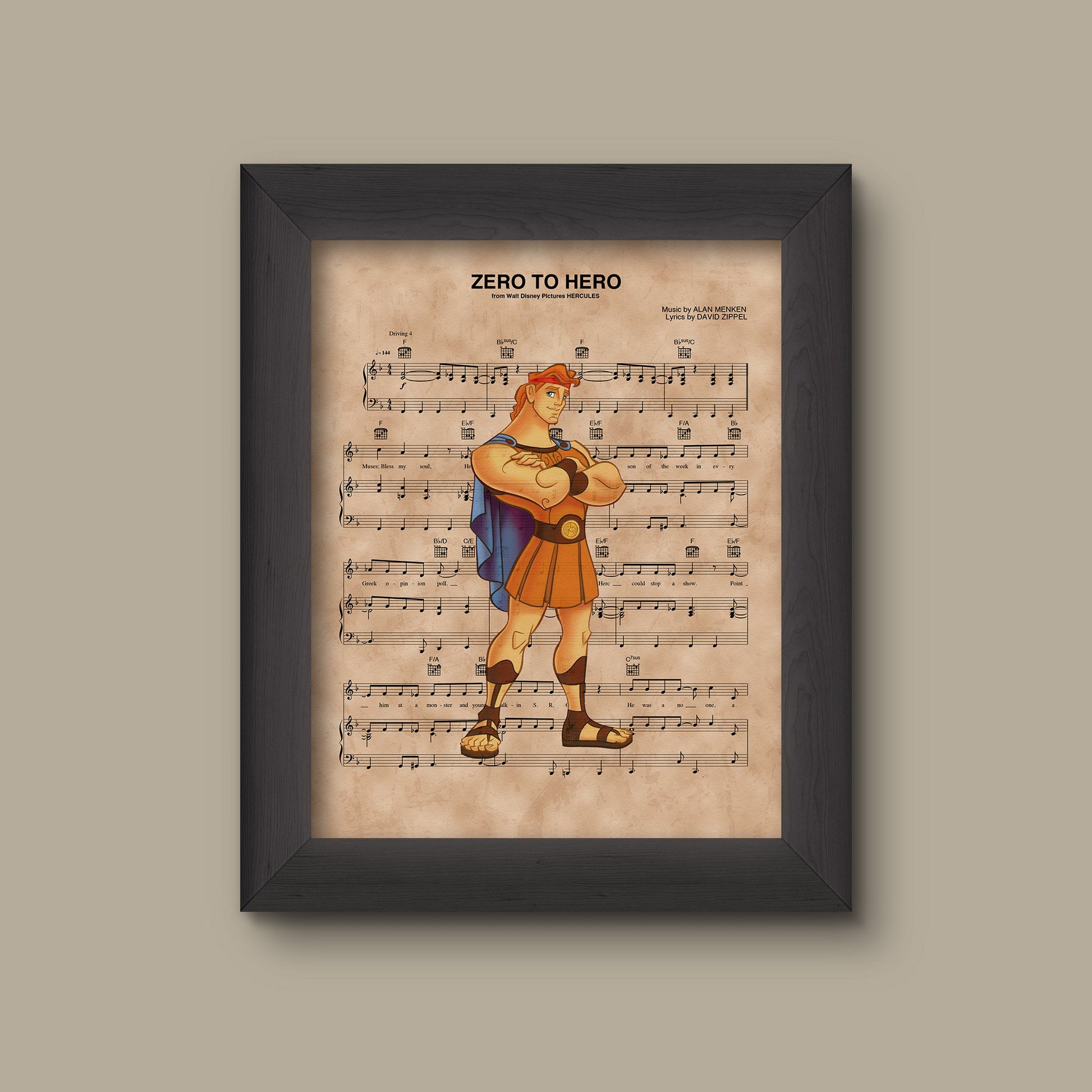 Add a refined touch to your space with this museum-quality art print inspired by Hercules, Zero to Hero Sheet Music Art Print Disney Nursery Gift, Wall Decor, Sheet Music Art Print.