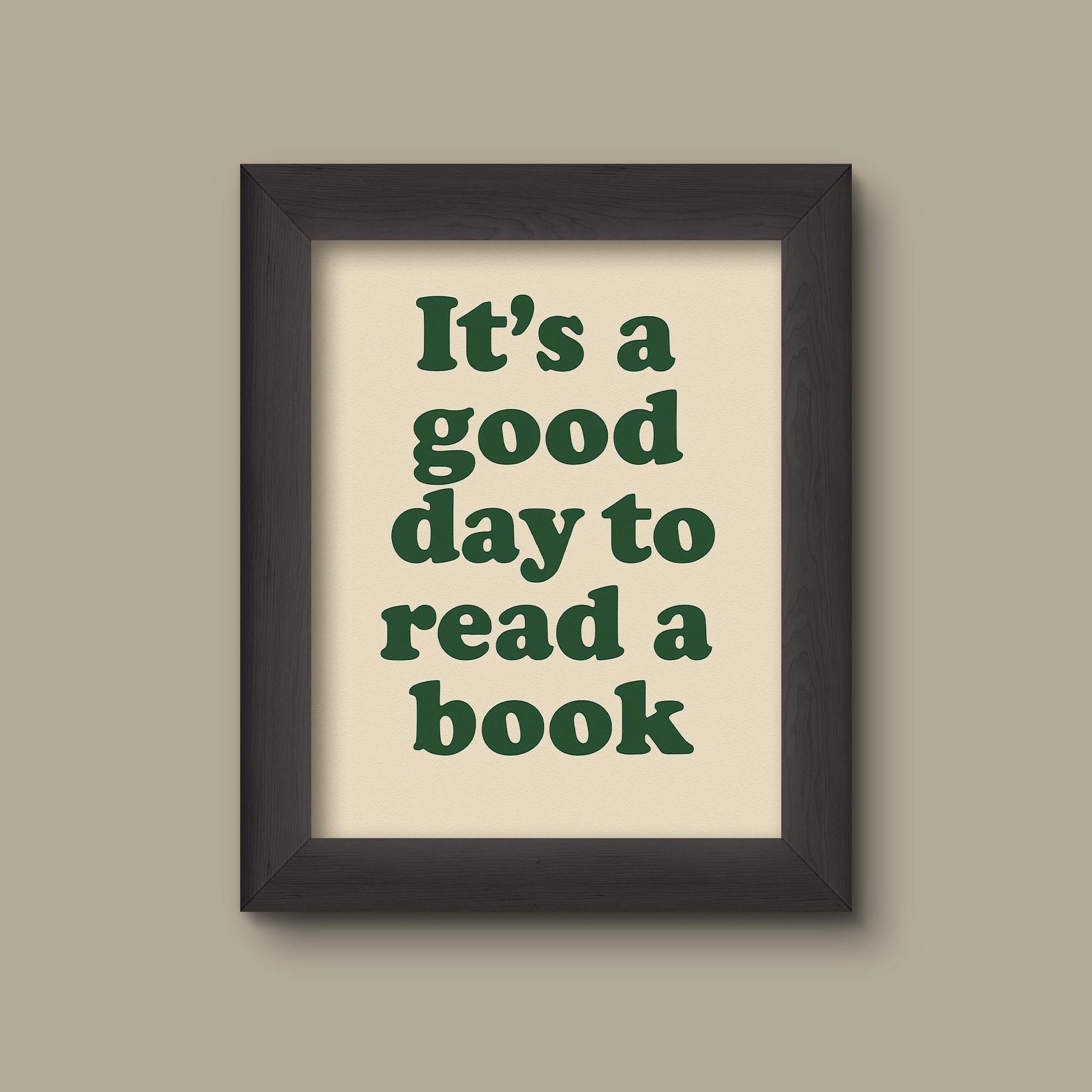 Add a refined touch to your space with this museum-quality art print inspired by It’s a Good Day to Read a Book | Beige and Green Retro Quote Print | Minimalist Book Lover Wall Art | Reading Room Decor.