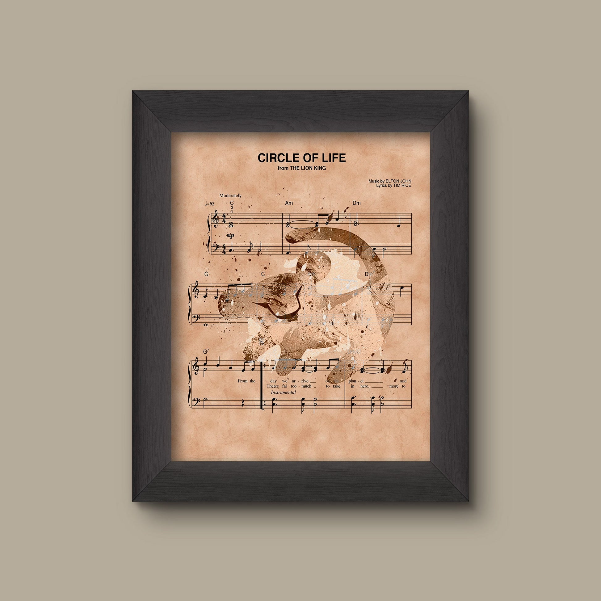 Add a refined touch to your space with this museum-quality art print inspired by Lion King Simba Silhouette Circle of Life Sheet Music Art Print.