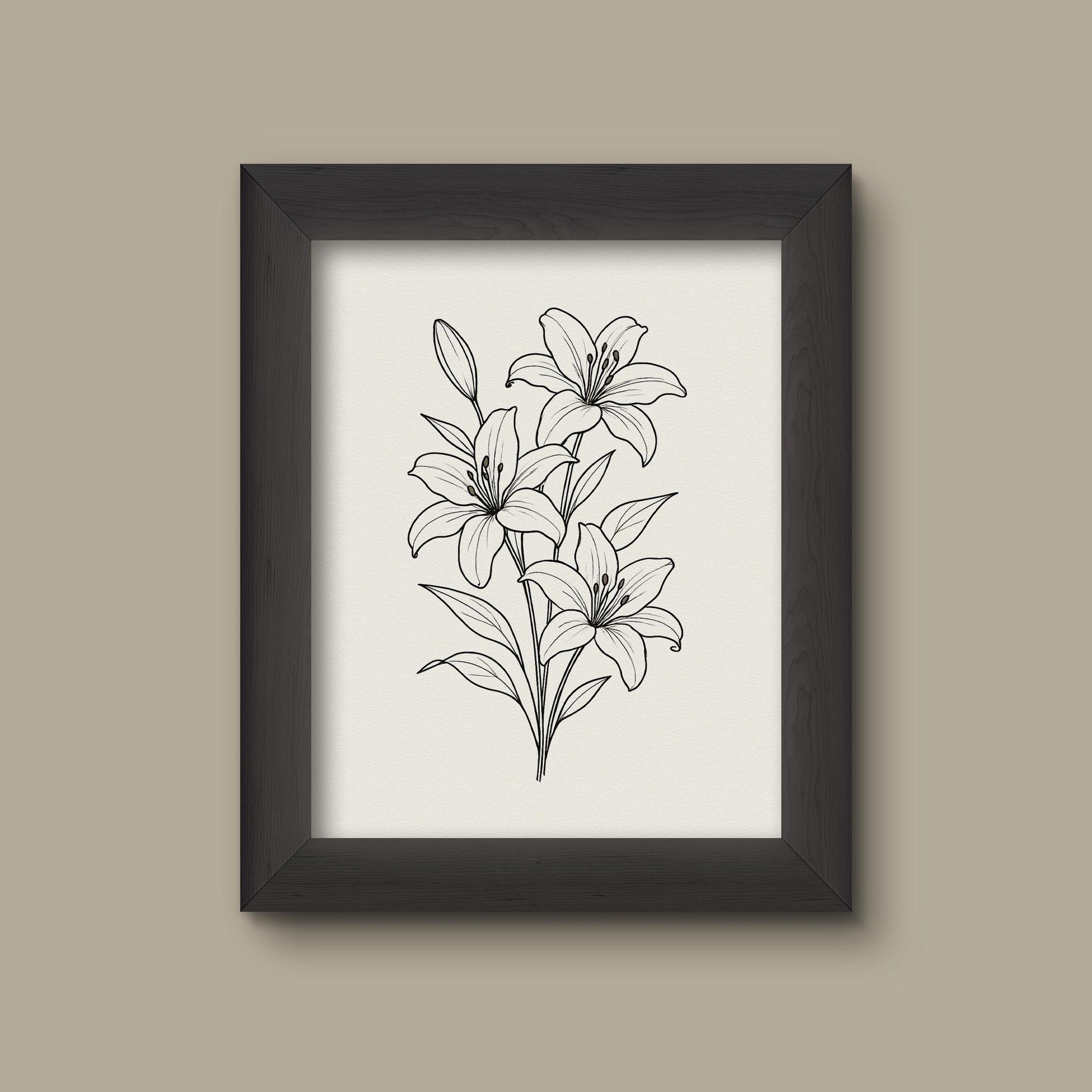 Add a refined touch to your space with this museum-quality art print inspired by Minimalist Lily Line Art Print | Hand-Drawn Botanical Illustration | Modern Wall Decor.