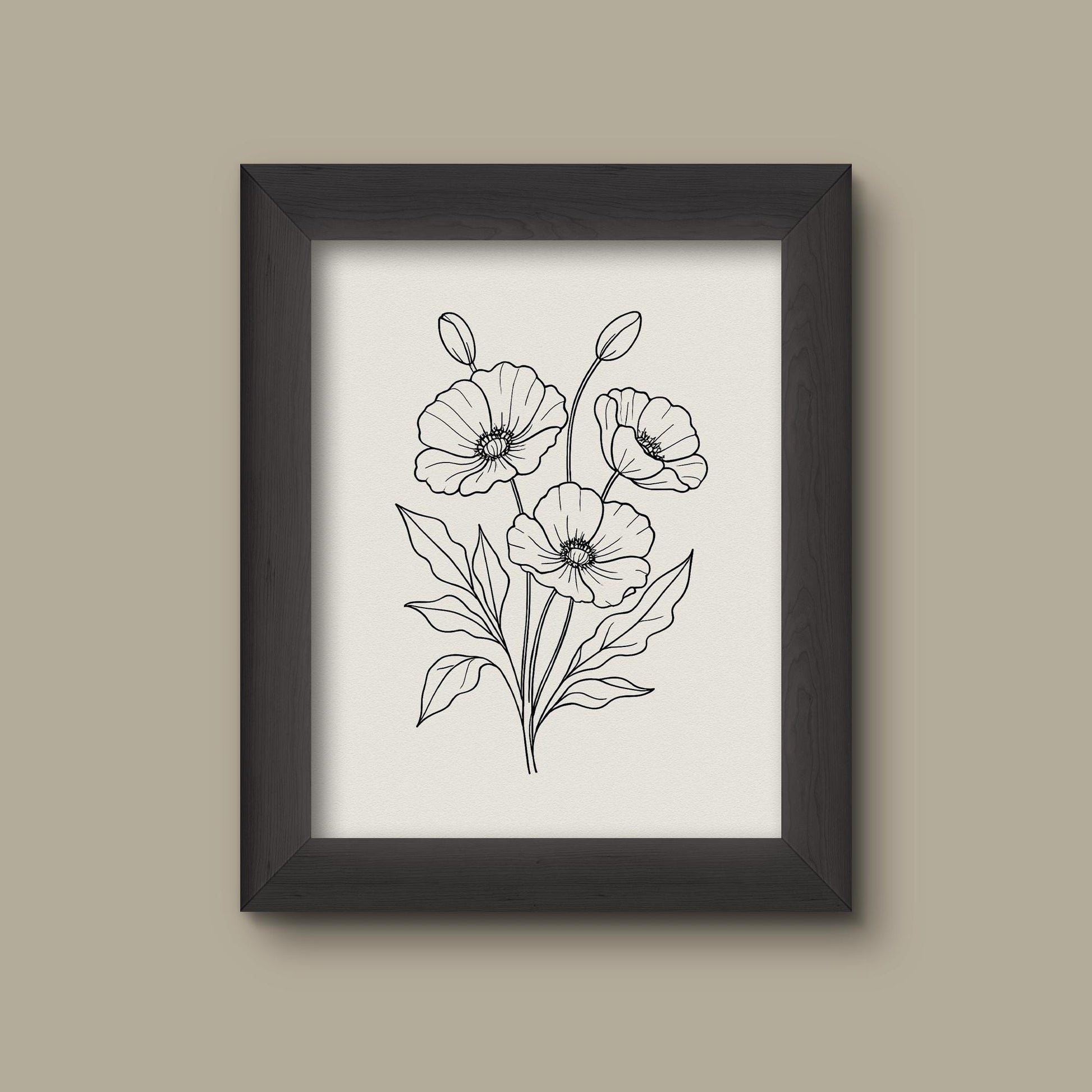 From the artist: Minimalist Poppy Flower Line Art Print Celebrate the beauty of simplicity with this elegant minimalist floral line art print. Featuring a delicate cluster of poppy flowers and lush leaves, this hand-drawn illustration captures the graceful charm of nature using clean, flowing lines. The soft ivory background enhances the artwork's modern, airy feel, making it a perfect addition to a living room, bedroom, or office space. Ideal for anyone who loves botanical prints, minimalism, or calming...