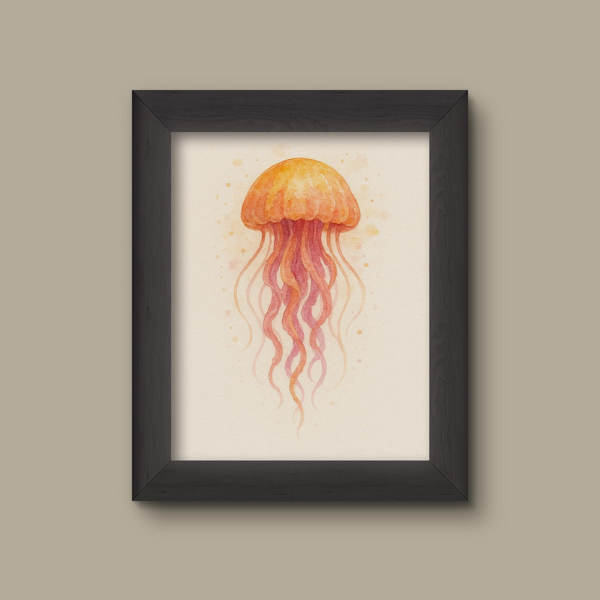 Add a refined touch to your space with this museum-quality art print inspired by Orange Watercolor Jellyfish Print | Ocean Sea Life Wall Art.