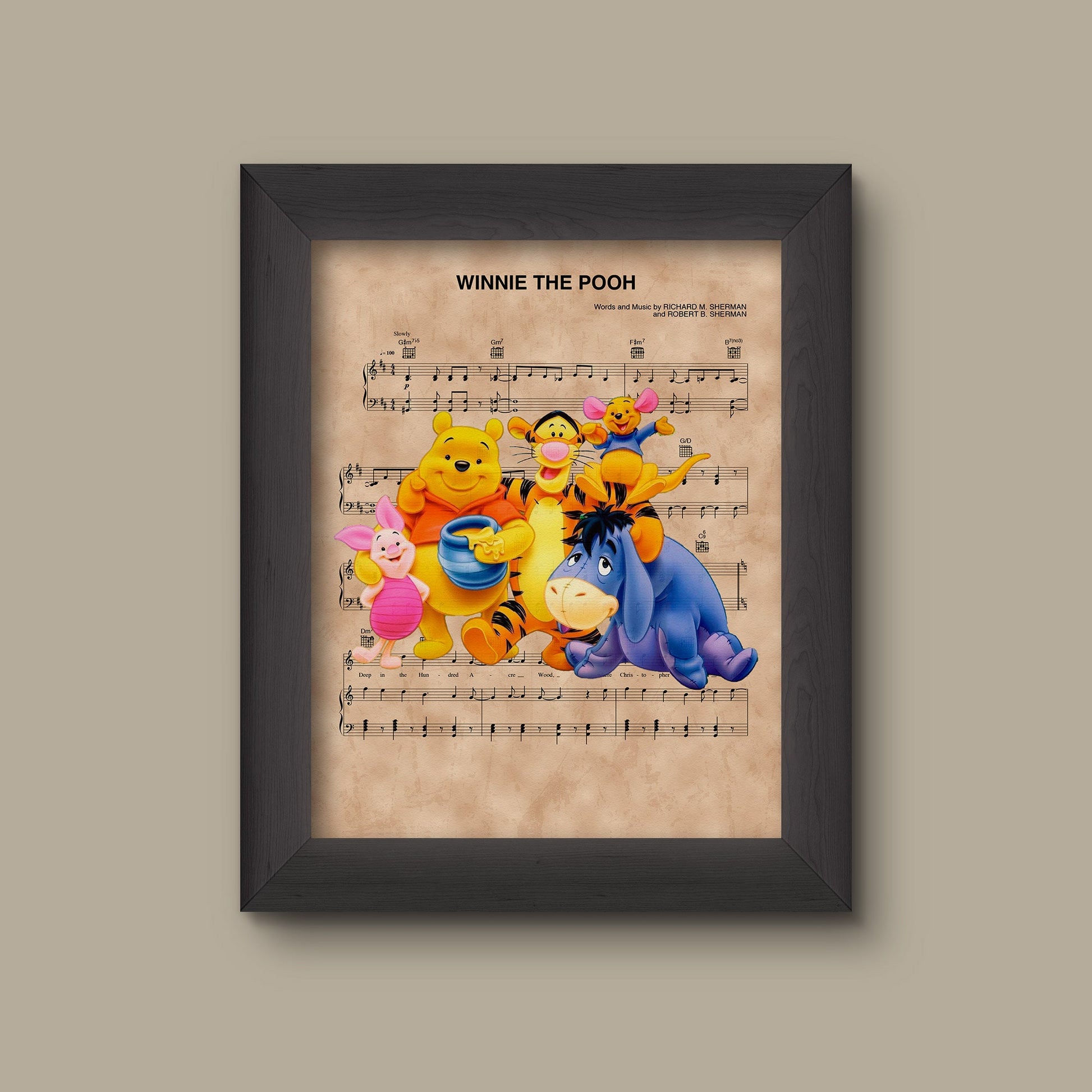 Add a refined touch to your space with this museum-quality art print inspired by Winnie the Pooh and Friends, Disney Wedding Gift, Disney Anniversary Gift For Her, Winnie Tigger, Wall Decor, Sheet Music Art Print.