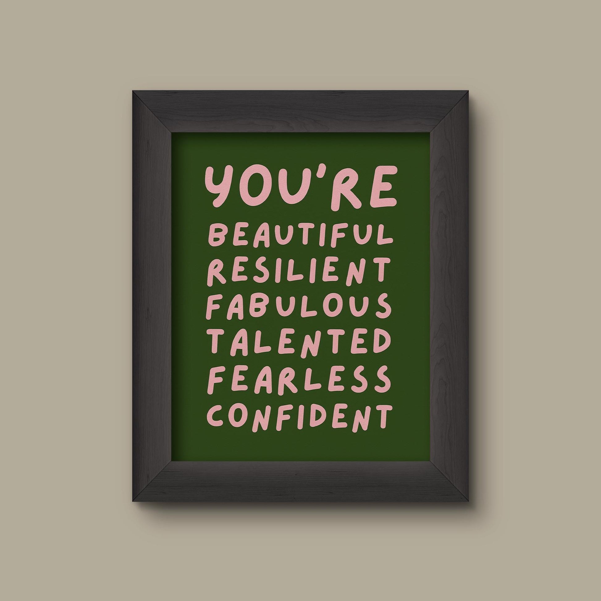 You’re Beautiful Resilient Fabulous Talented Fearless Confident | Green & Pink Affirmation Art Print | Fine Art Print